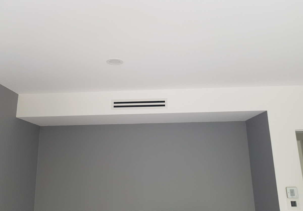Réalisation de systèmes réversibles gainables intégrant une régulation AIR ZONE. Ces installations offrent un contrôle maximal du système de climatisation en permettant de choisir la température et le débit de soufflage idéale de chaque pièce et en faisant moduler la puissance du groupe extérieur selon les besoins.